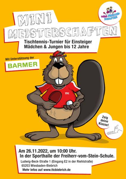 Kinder, aufgepasst! Wer gerne Tischtennis spielt oder dies gerne einmal ausprobieren möchte, der darf sich auf Samstag, den 26. November 2022 freuen. Um 10 Uhr in der Sporthalle der Freiherr-vom-Stein-Schule startet der Ortsentscheid der mini-Meisterschaften unter der Regie des TTC Rot-Weiß Biebrich. Anmeldeschluss ist jeweils 15 Minuten vorher.